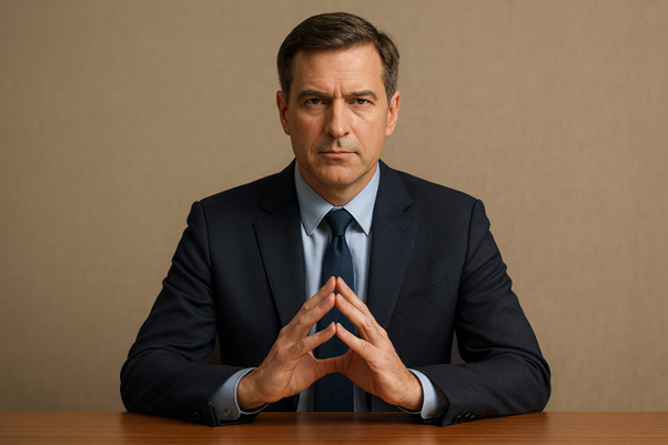 Steepling—the act of bringing the fingertips of both hands together, forming a shape reminiscent of a church steeple—is a classic gesture associated with authority and expertise. This gesture conveys thoughtful consideration and self-assurance without appearing aggressive. It is commonly observed among senior executives, politicians, and experts during interviews or high-stakes discussions.